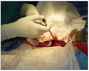 Therapy with oral albendazole 400 mg twice daily was initiated on admission. Ten days later, the patient underwent an exploratory laparotomy with cholecystectomy and partial hepatic lobe resection (Figure 4). Hypertonic saline solution (15%) was instilled in the liver cysts (Figure 5), and they were decompressed, evacuated (Figure 6), and marsupialized.