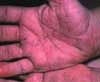 A slightly pruritic, red, scaly rash on an 8-year-old boy’shands has been progressively worsening since it appeared4 months earlier. Nail pitting also was noted. There are noother rashes on his body. The patient is active in sports;denies any new exposure to soaps, clothing, or other contactants;and spends time in the homes of his recently divorcedparents.