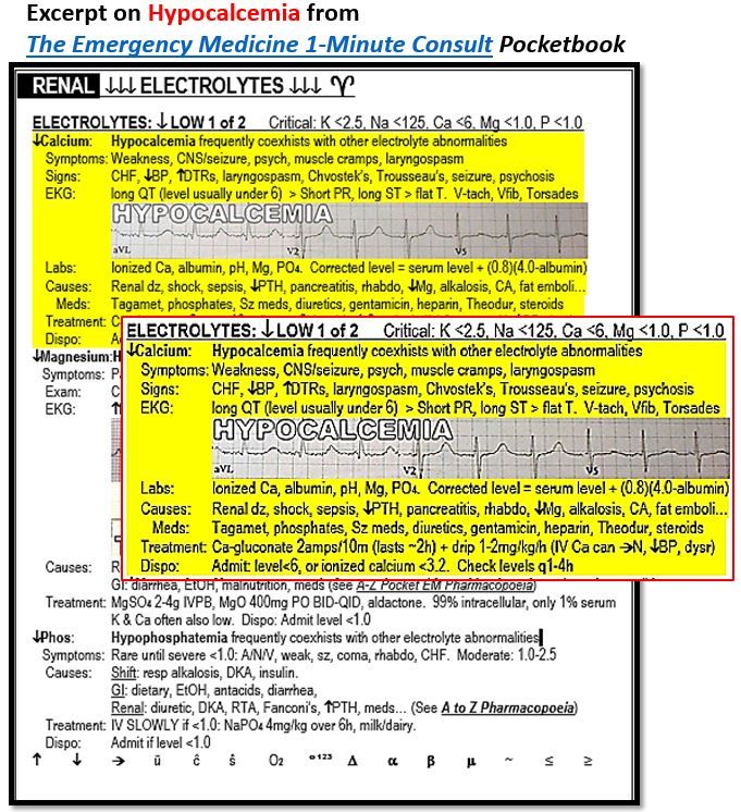 For additional information, please see full Excerpt on Hypocalcemia fromThe Emergency Medicine 1-Minute Consult Pocketbook