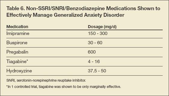 Other medications that can be used to treat persons with GAD are listed in Table 6. As with all anxiety disorders, a psychiatrist might need to periodically revisit and revise a patient’s treatment plan based on his response to medications and changing preferences.