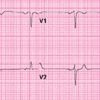 The ECG shows a prominent QRS voltage in the left precordial leads, which suggests left ventricular hypertrophy. However, on closer observation, there is an extra positive deflection between the terminal portion of the QRS complex and the beginning of the ST segment (Figure 1). These prominent deflections, most clearly visible in the precordial leads V3 to V6, are Osborn or "J" waves. They are the classic ECG finding in hypothermia. Sometimes referred to as a "camel's hump," Osborn waves probably represent intraventricular conduction delay. They are present in about 80% of patients with core temperatures of less than 35.5°C (96°F).1