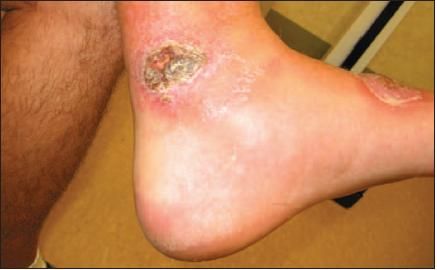 CL is a chronic disease with lesions appearing within 1 to 7 months of exposure.5 Typically, an initial lesion develops at the site of the sandfly bite as a small, erythematous papule. Progressive ulceration follows within 2 weeks to 6 months of infection. Ulcerated lesions are typical of infection caused by New World species and L major (Figure 2). More severe cutaneous disease may spread locally or hematogenously to involve deeper tissues. In Latin America, most such cases are caused by Leishmania braziliensis and Leishmania amazonensis.35