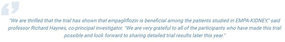 "Worldwide 5 to 10 million people die each year from chronic kidney disease and many lives are severely disrupted by dialysis treatment," said associate professor William Herrington, clinician scientist Oxford Population Health, honorary consultant nephrologist and EMPA-KIDNEY co-principal investigator, in the statement.