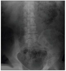 Figure 1 – Gas surrounding the left kidney is seen in this radiograph of the abdominal area.