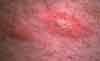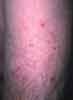 Herpes simplex and herpes zoster outbreaks are more vesicular; self-limited;and crusting, especially 2 weeks after eruption. The lesions of psoriasisand seborrhea are more pruritic and, unlike this patient's rash, they are classicallyfound above the superior aspect of the gluteal crease.