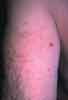 During the past few weeks, itchy papules have developedprimarily on this 47-year-old man's extremities. The lesionslast for a few weeks, then crust and disappear while newcrops erupt. The patient denies fever, body aches, and jointpain. His only medication is atorvastatin, which he hasbeen taking for several years.