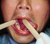 To examine the oral cavity and oropharynx, you need only adequate lighting, 2 tongue blades (or dental mirrors), and gloves. A variety of lighting sources are available. A head-worn light is particularly useful because it affords relief from the parallax that results from a hand-held light and frees both hands for the examination. I routinely use a tongue blade in each hand (Figure 2). This permits retraction of the mobile soft tissues and more complete exposure of the mucosal sur-faces for inspection. Use of cotton gauze to absorb excessive saliva facilitates close evaluation of suspicious mucosal areas.