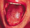 Fungal infection. Oral candidiasis may occur in immunocompromised patients (eg, those with AIDS or cancer) following oral irradiation and sometimes following antibiotic administration. If your patient fails to respond promptly to appropriate agents, consider an alternative diagnosis.