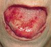 The biopsy should be full thickness and include the interface between the ulcer and normal mucosa. Submit the specimen promptly in gauze moistened with saline (not in formalin) for immunohistochemical studies. Be sure to call your pathologist to alert him or her to your differential diagnosis; this can help ensure proper processing of the specimen.
