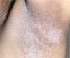 For 25 years, a 74-year-old man had an intermittent, painful, and pruritic rash that caused cracking and erosions in the axillae and groin. It worsened with sweating and in the summer and also when clothing or skin rubbed against the eruption. The patient’s father, a paternal uncle, and all 3 of the patient’s daughters had a similar rash. Cetirizine and a combination of xipamide, bacitracin ointment, clotrimazole, and triamcinolone cream were prescribed to treat the rash.