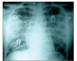 Figure 1. Chest radiograph demonstrating bilateral interstitial infiltrates.