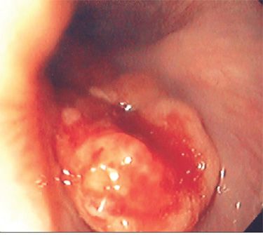 For 1 month, a 60-year-old white man has had increasing fatigue, generalized weakness, and exertional dyspnea. He becomes short of breath after he walks only 100 to 150 yards on level ground or climbs only 1 flight of stairs. In addition, he has unintentionally lost 12 lb in the past month and has experienced intermittent dysphagia with solid foods. He attributes this last symptom to long-standing gastroesophageal reflux disease (GERD), for which he regularly takes over-the-counter omeprazole.
