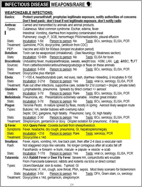 Q-fever fromThe Emergency Medicine 1-Minute Consult Pocketbook