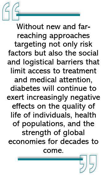 "Without new and far-reaching approaches targeting not only risk factors but also the social and logistical barriers that limit access to treatment and medical attention, diabetes will continue to exert increasingly negative effects on the quality of life of individuals, health of populations, and the strength of global economies for decades to come."