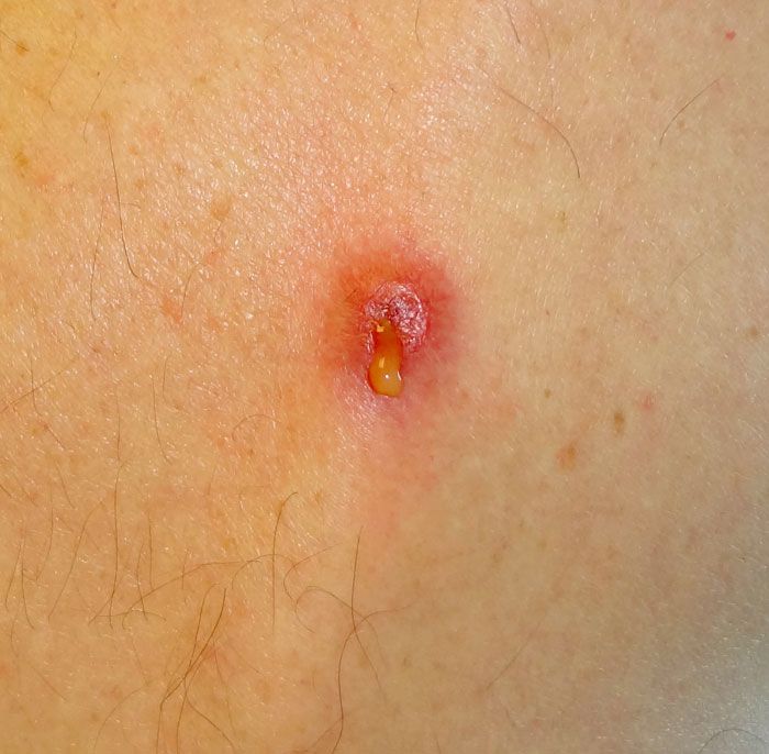 A 51-year-old man complained about a solitary painful lesion on the back. His medical history included numerous bouts of folliculitis that involved the trunk.