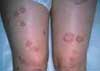 For several months, a 59-year-oldwoman has had numerous asymptomaticlesions on her arms andlegs. During this period, she has notbeen exposed to the sun and hastaken no new medications.
