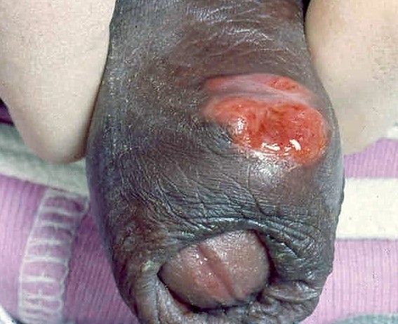 A 36-year-old male native of Guyana, South America, presented with a rapidly expanding penile lesion. Although painless, the lesion bled easily with even minor friction. The otherwise healthy patient was in America to visit family.
