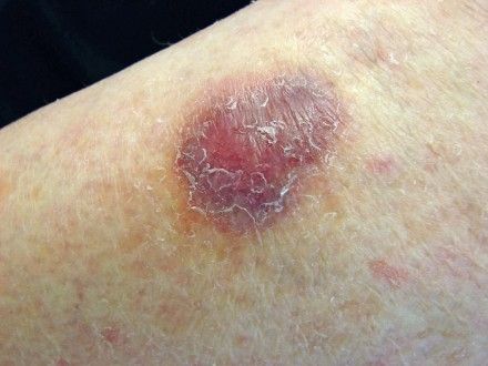 Several non-tender, rock-hard, purple-colored nodules appeared on the legs A 67-year-old woman. Her past medical history was significant for distant non-Hodgkin lymphoma.