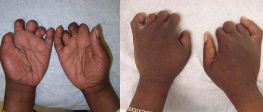 This patient, a 45-year-old African American man, presented with heart disorders and congenital hand deformities. Congenital deformities of the hands are common. A small group of these deformities are associated with congenital disorders of the heart. Some of the hand-heart abnormalities are inheritable.