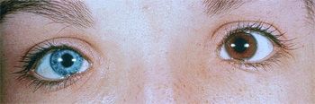Note: Inherited heterochromia may be associated with Waardenburg syndrome (in conjunction with sensorineural deafness) or with piebaldism (in conjunction with a central forelock of white hair).
