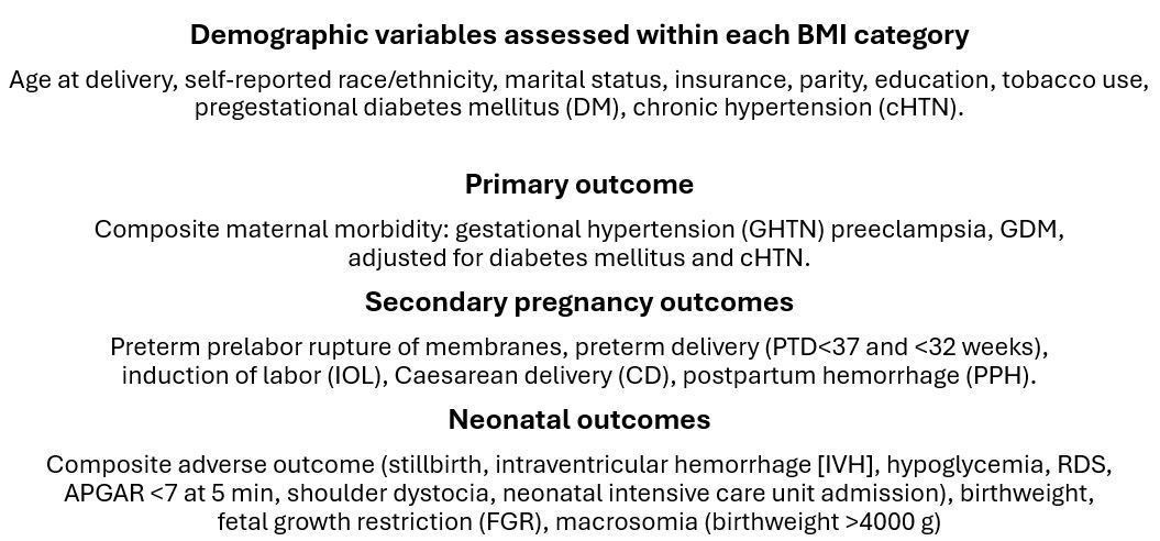 For their retrospective analysis, senior author Kajal Angras, DO, from the Department of Obstetrics and Gynecology, Geisinger Health System, in Danville, PA, and colleagues tapped data for pregnant women who delivered singleton births within the 5 delivery hospitals in the Geisinger Health System in Pennsylvania between October 2007 and December 2023, including all pregnancies in which maternal prepregnancy BMI was 18.5 kg/m2 or greater. They assessed risk of pregnancy and neonatal morbidity by maternal prepregnancy BMI category, ie, normal weight (18.5–24.9 kg/m2), overweight (25.0–29.9 kg/m2), and class 1 (30.0–34.9 kg/m2), class 2 (35.0–39.9 kg/m2), and class 3 (40.0 kg/m2 and greater) obesity. Demographic variables assessed and the primary and secondary outcomes for pregnant women and neonates follow1:
