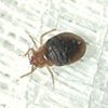 Bedbugs are reddish brown and about 5 mm long (B). These blood-sucking parasites feed primarily at night. During the day, they hide in crevices in the mattress, box spring, and bed frame. They may also be found in cracks in the floor and behind loose wallpaper.