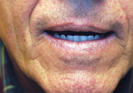 For several months, this 64-year-old man has had persistently dry lips despite frequent application of lip balm. He is otherwise healthy, and the lips are asymptomatic except for the dryness. Examination reveals that the dryness is confined to the lower lip.