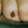 Because of the patient’s history of melanoma and the fact that she could not recall injuring the toe, a partial nail evulsion was performed. Fortunately, the only finding was dried blood.
