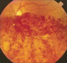 A 70-year-old woman reported that she could see only parts of things and that her vision was blurred in her left eye. She described her vision as “a puzzle with pieces missing.” She had no eye pain but saw floaters in her left eye. She also felt she could see an afterimage of light-“like a flash lingering for several minutes”-in her left eye even after the room lights were turned off. She had a hemicentral retinal vein occlusion.