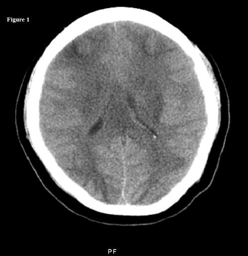 A 22-year-old pregnant woman presented at 36 weeks of gestation with a 1-day history of mild headache, blurred vision, and epigastric pain. Her blood pressure was 175/120 mm Hg. A brain CT scan without contrast showed marked diffuse vasogenic cerebral edema and partial bilateral uncal herniation and effacement of the suprasellar cistern. Bilateral low attenuation of the frontal and occipital lobes probably resulted from marked edema.