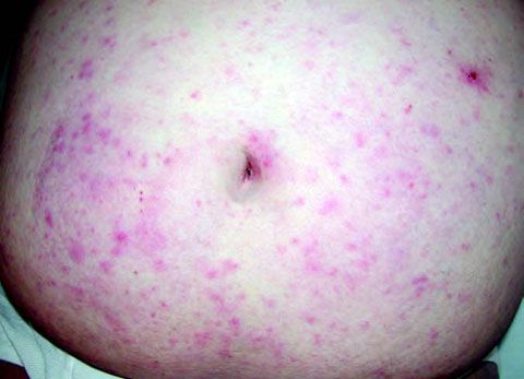 Figure 2 – This petechial rash occurred in a 23-year-old man with a 2-day history of fever and chills. Culture confirmed the diagnosis of meningococcal meningitis. (Photograph courtesy of Charles S. Bryan, MD.)