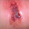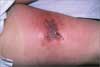 The culture grew out MRSA (B), Escherichia coli, and Klebsiella organisms (E). TMP/SMX (H) and rifampin (J) had been started pending culture results. The infection resolved uneventfully. Herpes simplex has a sudden onset and should be in the differential. During the first few days of the infection, it can be difficult to distinguish clinically between herpes simplex and a bacterial infection. Mixed bacterial infections can be challenging to diagnose pending culture results, particularly in a patient with this exposure history.