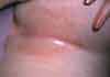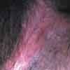 A persistent, 2-month-old rash under both breasts has not responded to over the-counter antifungal creams. The 55-year-old patient now seeks medical care;she is otherwise healthy.Do you recognize this eruption?
