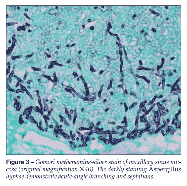 3. Drakos PE, Nagler A, Or R, et al. Invasive fungal sinusitis in patients undergoing bone marrow transplantation. Bone Marrow Transplant. 1993;12:203-208.