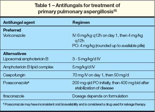 In the October 2008 issue of The Journal of Respiratory Diseases, we reviewed the clinical presentation and diagnosis of invasive pulmonary aspergillosis. In this article, we will review the treatment options.
