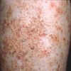 For the past 1 to 2 weeks, a 52-year-old man has an asymptomatic eruption on the lower legs. He has not been bitten by a tick; he has no fever, chills, or aching joints; and he has not started any new medications.