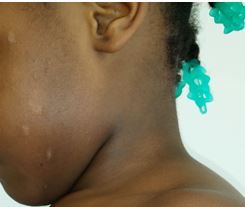 In our case, the diagnosis was made clinically and the patient was given a trial of topical 17% salicylic acid together with emollients. On a follow-up call, the child’s mother reported that although the lesions have persisted, some of them have become less rough.
