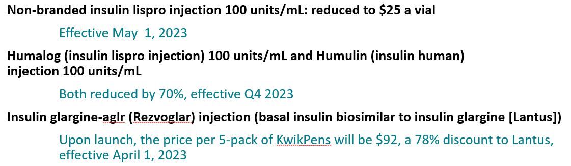 Some of the insulin price cuts announced will be effective immediately, others will roll out in April and May; Lilly Chair and CEO calls industry and lawmakers to join the effort.