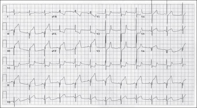 Acute inferior wall MI with right ventricular (RV) involvement was diagnosed in a 32-year-old man.