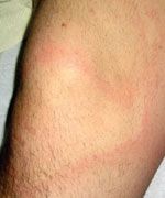 Palpitations and dizziness prompted a previously healthy 21-year-old cable lineman from southeastern Pennsylvania to seek medical attention. An ECG showed first-degree heart block. The young man was scheduled for outpatient cardiology consultation, but his symptoms worsened and he presented to an emergency department with chest pain and fever 2 days later. Further evaluation revealed that for the past 3 weeks he had myalgia; arthralgia; fatigue; and an expanding, erythematous, nonpruritic rash on his trunk and extremities. He did not recall any tick bites.