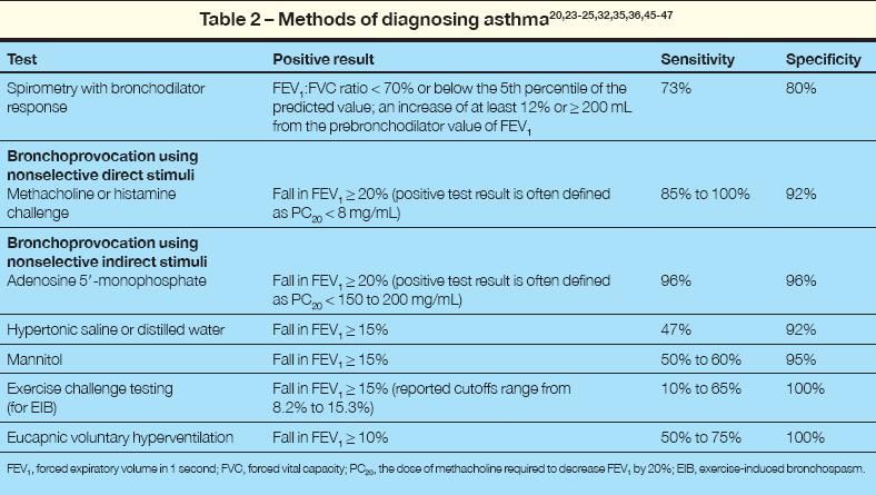 A variety of methods have been developed to objectively measure lung function to aid in the diagnosis of asthma (Table 2). Understanding the strengths and limitations of these tests can be vital to correctly interpret results and guide subsequent clinical decisions in patients with suspected or confirmed asthma.