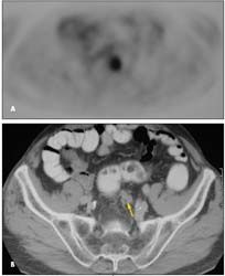 Advantages of PET. Ogunbiyi and colleagues1 demonstrated that the sensitivity and specificity of FDGPET were 91% and 100%, respectively, for the detection of local pelvic recurrence, and 95% and 100%, respectively, for hepatic metastases. These percentages were higher than those associated with CT (sensitivity and specificity of 52% and 80%, respectively, for the detection of pelvic recurrence; 74% and 85%, respectively, for hepatic metastases).