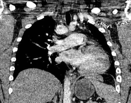 Many patients with isolated UAPA who do not have cardiac anomalies have an asymptomatic clinical course and generally survive into adulthood. The workup is often prompted by abnormal findings on a chest radiograph, as demonstrated in the patient presented in this case. Earlier reports suggest that as many as 30% of UAPA patients may be asymptomatic2; however, a more recent report from 2002 of 108 patients with isolated UAPA indicated a lower percentage of asymptomatic patients (13%).4