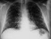 Diffuse pneumonia may also result from hematogenous spread. This is a rapidly progressive condition seen most commonly in immunocompromised patients; it may cause respiratory failure. Chest radiographs typically show a diffuse reticulonodular pattern throughout both lung fields.