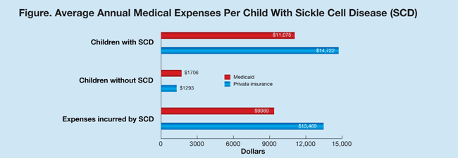Children with sickle cell disease (SCD) were shown to have annual medical costs of $9369 (Medicaid) and $13,469 (private insurance), which is significantly higher than that for children without SCD, according to a study led by Djesika D. Amendah, PhD, an economist at the CDC.1 SCD in children resulted in total medical costs of at least $335 million per year in the United States in 2005.