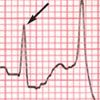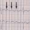 Differentiating VT from supraventricular tachycardia (SVT) with aberrancy is often quite difficult. Yet, because of its potential for acute morbidity, identifying VT can be critically important. There are few ECG findings other than capture beats (narrow complex beats that result from a supraventricular impulse successfully conducted to the ventricles) (Figure 2) or fusion beats (caused by partial capture of the supraventricular impulse fused with an ectopic ventricular beat) that reliably confirm the diagnosis of VT. The presence of AV dissociation (characterized by P waves that are discernible at a fixed P-P interval at a rate less than that of the tachycardic wide-complex rhythm [the VT] and without apparent relationship to the QRS complexes) also confirms VT as the cause of a wide QRS-complex rhythm. None of these findings are seen here.