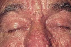 Subtype III of rosacea is the one in which phymata occur: the most familiar is rhinophyma, whereby the nose shows irregular, grotesque overgrowth of soft tissue and sebaceous glands (Figures 2 and 3). Of course, not every bulbous nose constitutes rhinophyma, even in a person with rosacea. Wide ethnic variation in nose size and shape is exceeded by still wider individual variation independent of any disorder. Treatment now includes surgical and other reductive and ablative measures.