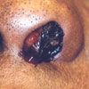 The Case: For 2 weeks, a 49-year-old woman has had mild, intermittent epistaxis with left-sided facial pain, swelling, and otalgia; the severity of the bleeding has increased during the past 24 hours. She also has congestion of the left naris of 1 month's duration.