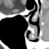 DISCUSSION: A facial CT scan showed opacification of the maxillary, ethmoidal, and sphenoidal sinuses, consistent with a left paranasal sinus mass (Figure). The mass caused destruction of the bony architecture of the left inferior and medial nasal turbinates with extension into the nasopharynx.