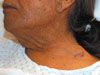 He is cachectic but is in no acute distress. Vital signs are normal. No heart murmurs are audible; rales are noted in the upper lung fields. The abdomen is normal. Palpation of the neck reveals multiple firm, nontender supraclavicular nodes. Results of a posteroanterior and lateral chest radiograph are normal.